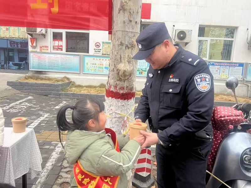 1月18日清晨七点左右,嵩阳路派出所的民警迎着寒风已坚守在护学岗。“警察叔叔,请喝一碗腊八粥吧,你们辛苦啦!”爱民路幼儿园的一位小朋友手捧着腊八粥对嵩阳路派出所民警侯杰说道。更有周围孩子家长说道:“一年四季,春夏秋冬总能看到护学岗民警的身影,谢谢你们护‘幼’周全!”待护学岗工作结束后,爱民路幼儿园园长带领幼师来到嵩阳路派出所,为坚守在护学岗、守护人民师生平安的民辅警送来了暖暖的腊八粥,用暖暖的腊八粥致敬风雨同舟的爱幼守护者。