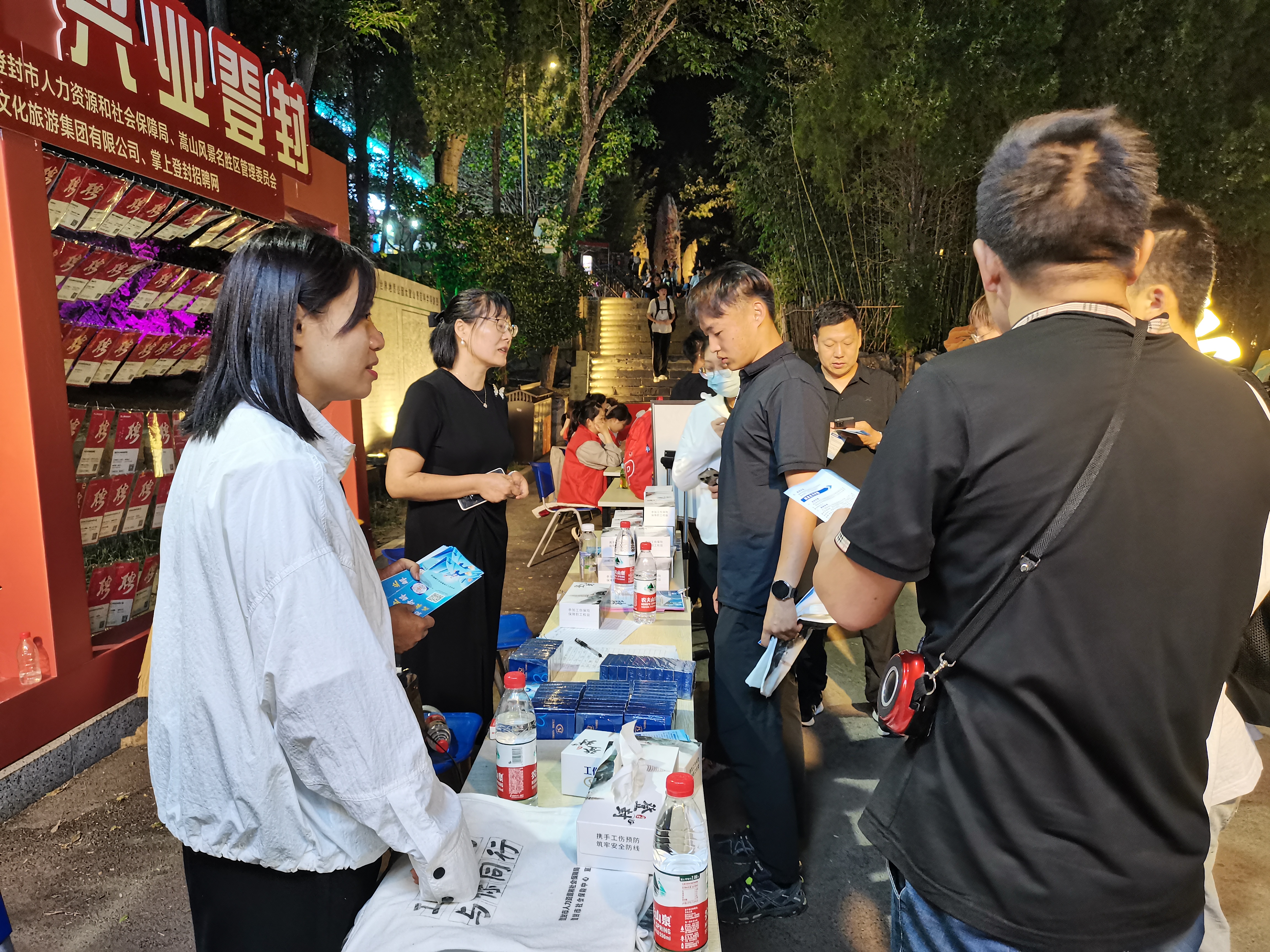 登封市是一个拥有丰富独特旅游资源的城市,“夜游嵩山”眼下更是人气火爆,成为青年大学生青睐的热门打卡地。为打造人才宜居宜业环境,营造引才留才爱才的社会氛围,加快推进中国式现代化登封实践,5月11日起,登封市委人才办和市就业创业服务中心因地借势,在嵩阳景区太室山广场开展为期一个月的“才聚嵩山,兴业登封”主题活动,将年轻人喜闻乐见的夜生活场景与求职招聘服务相融合,创新举措“招才引智”,现场“摆摊”提供国家级、省级、市级专精特新、创新型和高新技术本土企业175家1200个岗位,涵盖医疗、新材料、机械、汽车、能源等多个行业,为招引更多青年人才来登留登创业就业提供多元渠道,真正让各行业人才与天地之中、功夫之都实现“双向奔赴”。